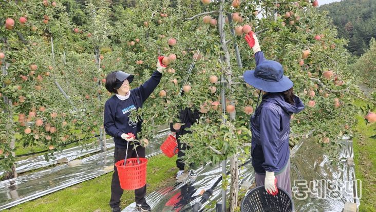 이번 봉사활동은 일손이 부족한 농가를 돕기 위해 마련된 자리로, 직원들은 낙과 정리와 수확 작업 등을 함께하며 농민들의 고충을 몸소 체험했다.
