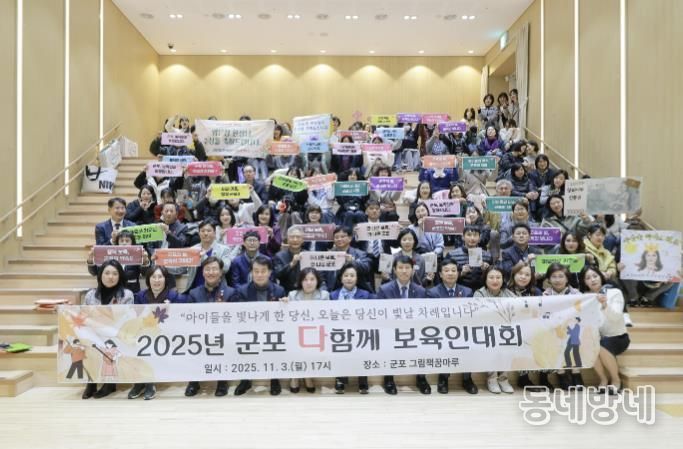 동네방네 김형규 기자 | 군포시어린이집연합회가 주관한 ‘2025년 군포시 보육인 한마당’ 행사가 11월 3일 그림책꿈마루 아리움 및 야외공연장에서 성황리에 열렸다.