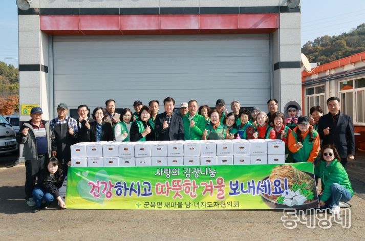 동네방네 김형규 기자 | 금산군 군북면새마을남녀지도자협의회는 지난 7일 군북면체육센터에서 사랑의 김장 나눔 행사를 열고 관내 어려운 이웃과 경로당에 전달할 김장김치 약 700포기를 직접 담갔다.