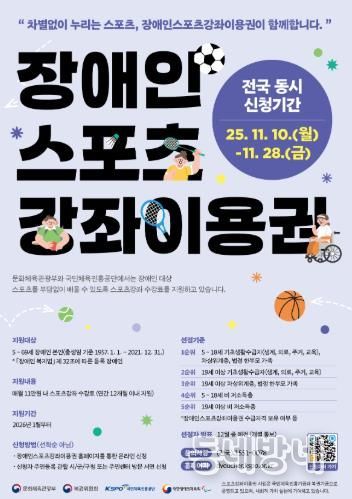 동네방네 김형규 기자 | 여수시는 11월 10일부터 28일까지 ‘2026년도 장애인 및 유·청소년 스포츠강좌이용권’ 신청자를 모집한다.