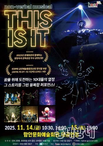 동네방네 김형규 기자 | 함안군은 오는 11월 14일과 15일 이틀간 함안문화예술회관 대공연장에서 비언어(넌버벌) 퍼포먼스 ‘디스 이즈 잇(THIS IS IT)’ 공연을 연다고 밝혔다.