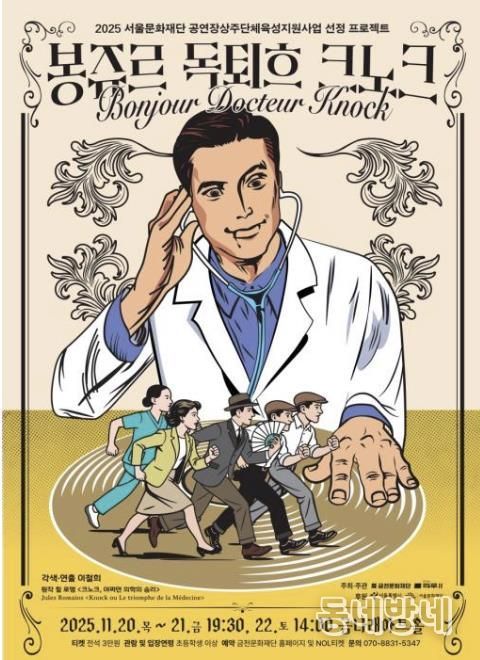 이번 공연은 서울문화재단의 ‘2025 공연장상주단체육성지원사업’의 일환으로 진행된다. 프랑스 작가 쥘 로맹의 1923년 발표 희곡 ‘크노크, 어쩌면 의학의 승리’를 원작으로 한 공연으로, 국내에서 최초 무대화됐다.