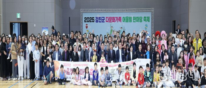 동네방네 김형규 기자 | 강진군이 지난달 25일 강진국민생활체육센터 제2실내체육관에서 ‘2025 강진군 다문화가족 어울림 한마당 축제’를 다문화가족과 이주노동자, 유학생 등 400여 명이 참여한 가운데 성황리에 마무리했다. 이번 행사는 강진군이 주최하고 강진군가족센터(센터장 조미아)가 주관했으며, 다양한 문화가 어우러지는 지역사회의 화합과 교류의 장으로 마련됐다.