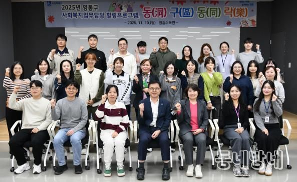 동네방네 김형규 기자 | `25년 11월 10일, 영통구는 영흥수목원에서 사회복지담당 공무원 힐링 프로그램, ‘동(洞)구(區)동(同)락(樂)’을 진행했다. 이 프로그램은 과중한 업무로 인한 정서적 피로와 스트레스를 해소하고 직원들의 심신 회복을 지원하기 위해 마련됐으며, 구/동 직원 30명이 참여했다.