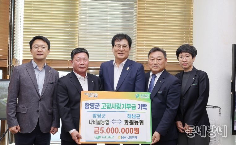 함평군은 11일 “함평 나비골농협과 해남 화원농협이 고향사랑기부제에 500만 원을 상호 기부했다”고 밝혔다.