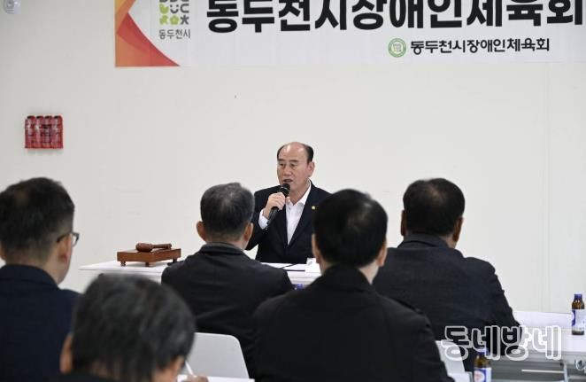 동네방네 김형규 기자 | 동두천시장애인체육회는 지난 10일 반다비체육센터에서 2025년 제4회 이사회의를 개최했다. 이날 회의에는 박형덕 동두천시장애인체육회장(동두천시장)을 비롯해 김용남 수석부회장, 이사 및 임원진 등 20명이 참석했다.