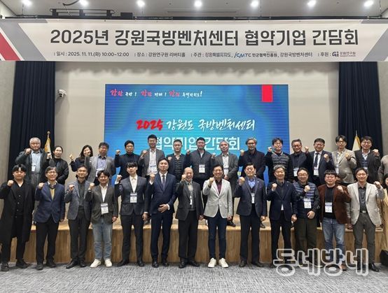 동네방네 김형규 기자 | 강원특별자치도는 강원지역 중소·벤처기업의 국방산업 진출 확대와 지원사업 정보 공유를 위해 '2025 강원국방벤처센터 협약기업 간담회'를 개최했다고 밝혔다.