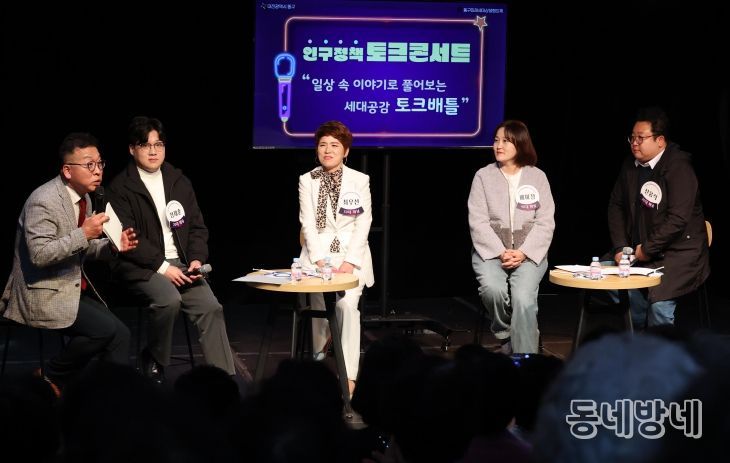 이날 프로그램은 유쾌한 남자 김범식 MC의 ‘펀펀토크’로 시작해 ▲공감토크 ‘YES or NO 청장의 선택’ ▲인구정책 숏폼·영상 공모전 수상작 상영 ▲세대간 토크배틀 ▲인구정책 OX 퀴즈 등 다채로운 프로그램으로 진행됐다.