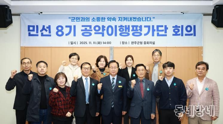 동네방네 김형규 기자 | 완주군이 지난 11일, 군청 중회의실에서 민선8기 4년차 공약이행상황 점검을 위한 공약이행평가단 회의를 개최했다.