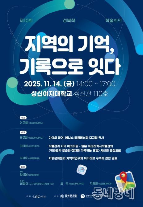동네방네 김형규 기자 | 오는 11월 14일 금요일, 성북구청이 주최하고 성북문화원·성신여자대학교 공공역사연구소가 주관하는 제10회 성북학 학술회의 ‘지역의 기억, 기록으로 잇다’가 성신여자대학교 성신관 110호에서 오후 2시부터 5시까지 개최된다.