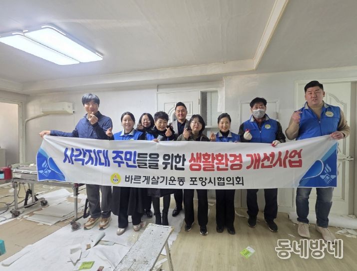 동네방네 김형규 기자 | 포항시는 바르게살기운동포항시협의회가 지난 10일부터 11일까지 양일간 지역 내 주거 취약계층을 대상으로 ‘사각지대 생활환경 개선사업’을 추진하며 어려운 이웃을 위한 따뜻한 나눔을 실천했다고 밝혔다.
