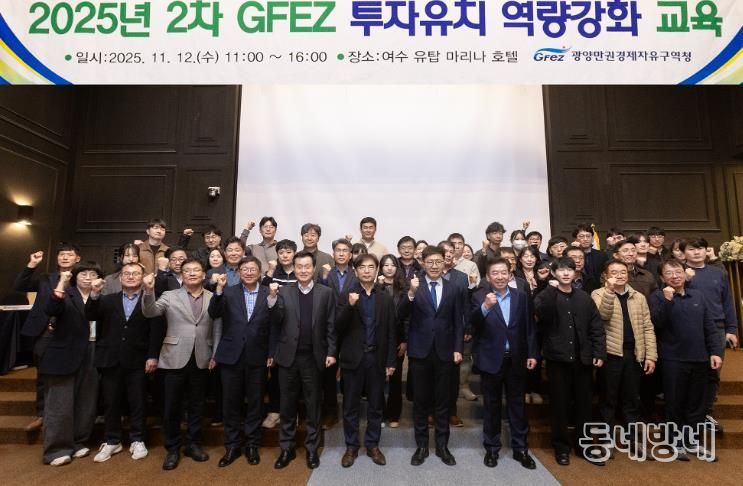 동네방네 김형규 기자 | 광양만권경제자유구역청은 11월 12일 여수 유탑마리나호텔에서 직원 70여 명이 참석한 가운데 ‘2025년 하반기 투자유치 역량강화 교육’을 실시했다고 밝혔다.