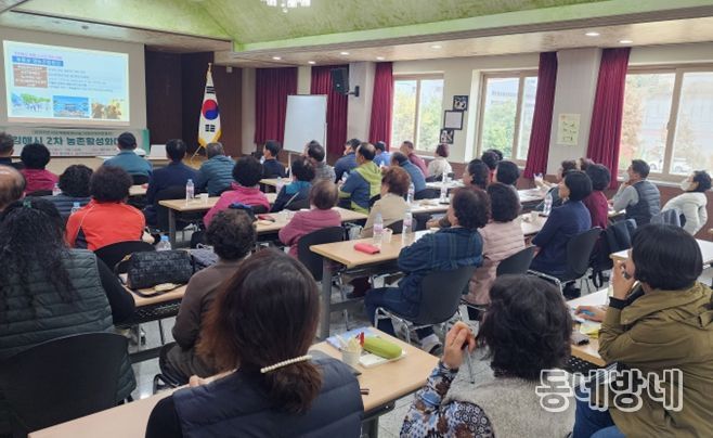 교육에는 50여명의 농촌마을 주민리더들이 참여해 ▲마을만들기 주민리더의 자세와 역할 ▲주민회의 운영방법 및 운영 워크숍 ▲농촌지역개발사업의 이해 ▲법정의무교육(4대 폭력예방교육)에 대해 배웠다.