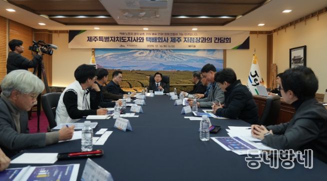 제주도는 16일 오후 도청 백록홀에서 롯데글로벌로지스, CJ대한통운, 한진택배, 로젠택배, 쿠팡CLS, 제주우편집중국 등 6개 택배회사 지점장 간담회를 열어 현장 노동 여건과 안전관리 실태를 파악하고 개선 방안을 모색했다.