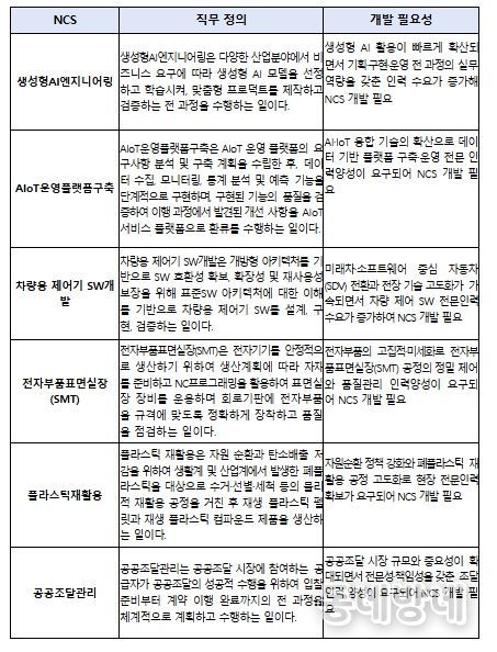 동네방네 김형규 기자 | 고용노동부는 생성형 인공지능(AI) 등 신기술 확산과 산업 변화에 발맞춰 2025년에 신규 개발한 6개 국가직무능력표준(NCS, National Competency Standards)과 개선·보완한 57개 국가직무능력표준을 12월 16일 확정·고시한다.