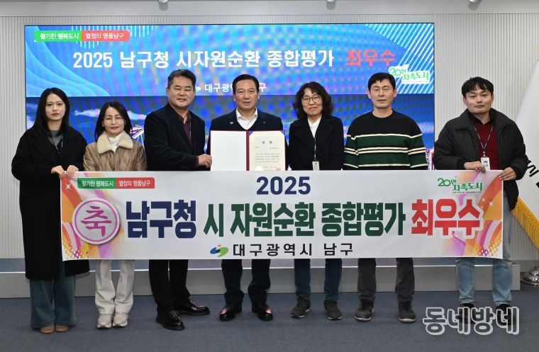 동네방네 김형규 기자 | 대구 남구는 2025 대구시 자원순환행정 종합평가에서 9개 구·군 가운데 ‘최우수’(1위)를 차지하며, 자원순환 선도 도시 명품 남구의 위엄을 알렸다.