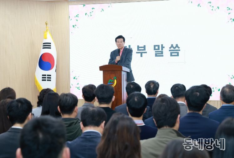 동네방네 김형규 기자 | 박범인 금산군수는 지난 1일 군청 다용도회의실에서 열린 간부회의에서 “꽃피는 춘삼월은 봄꽃이 만개하는 시기”라며 “꽃의 계절을 맞아 열리는 3색 꽃축제 개최 준비를 철저히 해달라”고 지시했다.
