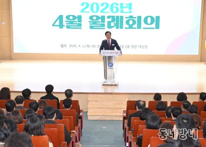 동네방네 김형규 기자 | 하남시는 2일 시청 별관 대강당에서 직원과 시민들이 참석한 가운데 ‘2026년 4월 월례회의’를 개최했다.