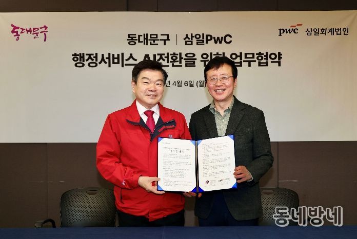 동네방네 김형규 기자 | 서울 동대문구는 공공 행정서비스의 인공지능 전환, 이른바 AX(Artificial Intelligence Transformation)를 본격 추진하기 위해 삼일PwC와 업무협약을 맺었다. 구는 6일 서울 용산구 삼일PwC TS홀에서 협약식을 열고, 행정서비스 전반에 AI를 어디에, 어떤 방식으로 적용할지 함께 진단하고 자문받는 협력 체계를 마련했다고 밝혔다. 이번 협약은 새 기술을 들여오는 데 그치지 않고, 행정 효율을 높이면서도 구민이 실제로 체감하는 서비스 변화를 만들어내는 데 초점을 맞췄다. 민간의 전문성을 바탕으로 공공행정에 맞는 AX 모델을 짜보겠다는 뜻이다.