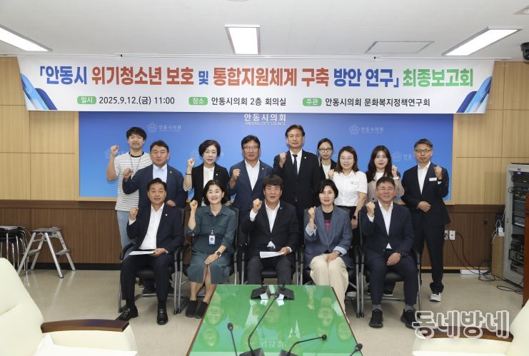 동네방네 김형규 기자 | 안동시의회 의원연구단체 문화복지정책연구회(회장 우창하)는 9월 12일(금) 안동시의회 2층 회의실에서 '안동시 위기청소년 보호 및 통합지원체계 구축 방안 연구' 정책연구용역 최종보고회를 개최했다.