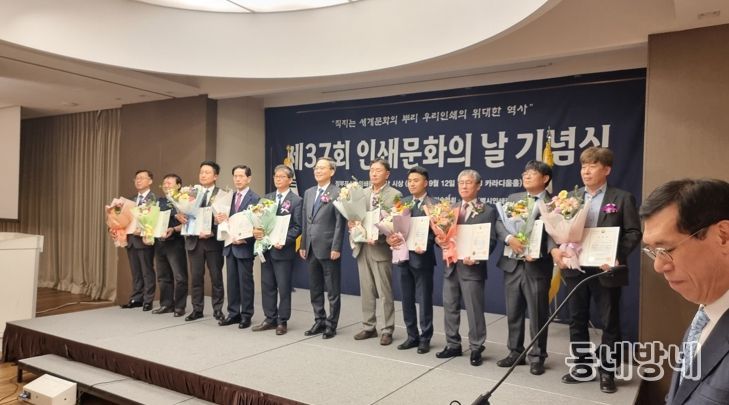 동네방네 김형규 기자 | 대구 중구는 지난 12일 서울 중구 호텔 피제이(PJ)에서 열린 ‘제37회 인쇄문화의 날 기념식’에서 인쇄문화 발전에 기여한 공로로 남산2동 현대기획 최경식 대표가 문화체육관광부 장관 표창을 수상했다고 밝혔다.