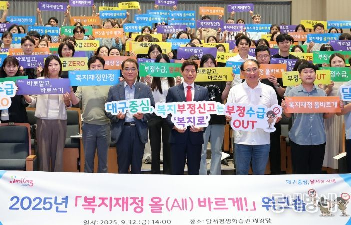 동네방네 김형규 기자 | 대구 달서구는 지난 12일 달서평생학습관에서 사회복지시설 종사자 및 사회복지직 공무원 150여 명을 대상으로 2025년 ‘복지재정 올(All)바르게!’ 워크숍을 개최했다.
