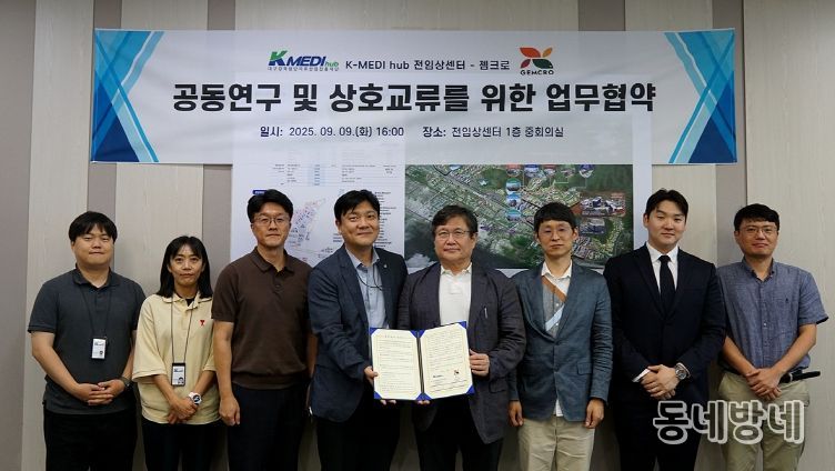 동네방네 김형규 기자 | 케이메디허브(대구경북첨단의료산업진흥재단, 이사장 박구선) 전임상센터가 ㈜젬크로와 인간화 마우스 활용 면역항암제 전임상평가 공동연구를 위한 업무협약을 체결했다.
