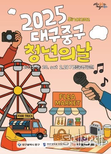 동네방네 김형규 기자 | 대구 중구는 청년의 날(매년 9월 셋째 주 토요일)을 기념해 오는 20일 오후 2시부터 10시까지 2·28기념중앙공원 일원에서 ‘2025년 중구청년의 날 행사’를 개최한다.
