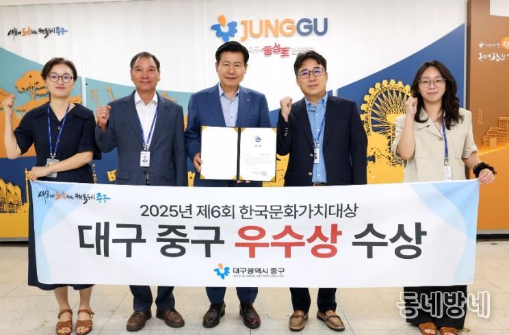 동네방네 김형규 기자 | 대구 중구는 (사)한국문화가치연구협회가 주관한 ‘2025년 제6회 한국문화가치대상’에서 우수상을 받았다고 밝혔다.