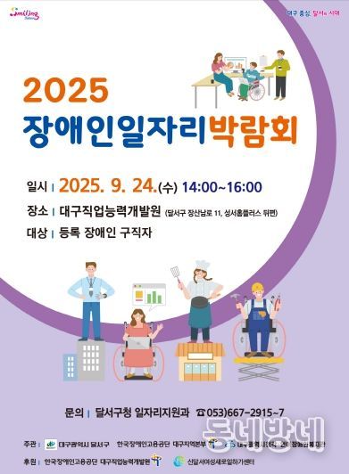 동네방네 김형규 기자 | 대구 달서구는 9월 24일 대구직업능력개발원에서 ‘2025 장애인 일자리박람회’를 개최한다.