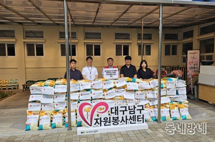 동네방네 김형규 기자 | 대구 남구는 지난 18일, (주)비앤지평화상사(대표이사 남상식)가 남구자원봉사센터에 추석 명절을 맞아 지역 취약계층을 위해 10kg 쌀 358포(1,000만원 상당)를 후원했다고 밝혔다.