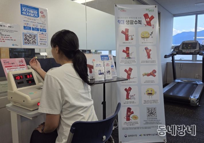 동네방네 김형규 기자 | 대구 남구는 생활에 밀접한 공간인 헬스장과 연계해 지역 주민들이 스스로 혈관 건강 상태를 점검하고 관리할 수 있도록 관내 헬스장에 심뇌혈관질환예방・관리 홍보 공간을 조성했다고 밝혔다.