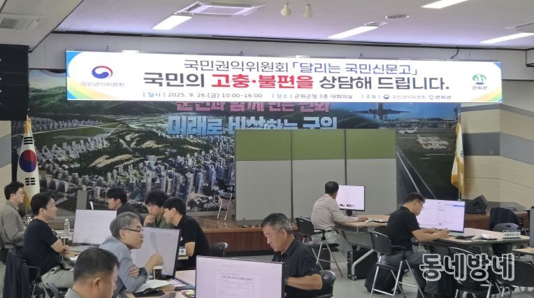 동네방네 김형규 기자 | 대구광역시 군위군은 9월 26일 오전 10시부터 4시까지 군위군청 3층 대회의실에서 국민권익위원회와 함께 ‘달리는 국민신문고’ 현장상담장 운영을 성황리에 마쳤다고 밝혔다.