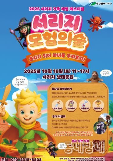 동네방네 김형규 기자 | 대구 북구청은 오는 10월 18일 동호동 서리지 생태공원 일원에서 '2025 서리지 가족 체험 페스티벌 – 서리지, 모험의 숲'을 개최한다고 밝혔다.
