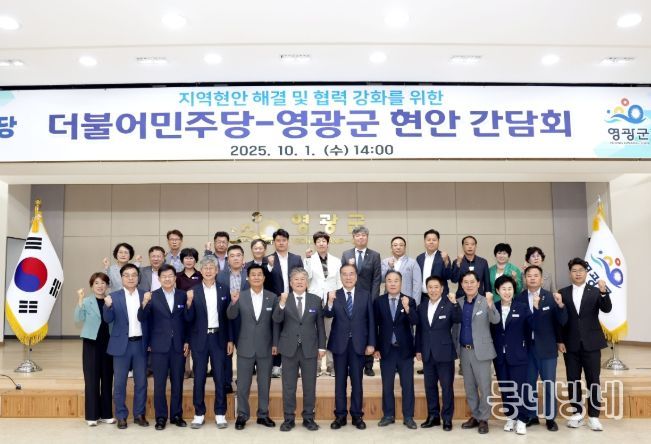 동네방네 김형규 기자 | 영광군은 10월 1일 오후2시 군청 3층 대회의실에서 더불어민주당과 당정협의회를 개최하고, 2026년도 국비예산 반영과 지역 현안 해결을 위한 협력 방안을 집중 논의했다고 밝혔다.