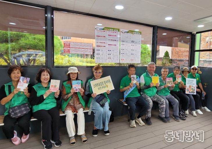 동네방네 김형규 기자 | 효령면 새마을회가 버스를 기다리는 주민들을 위해 스마트승강장 내 책꽂이에 도서를 기증하며 따뜻한 정서지원 활동을 이어가고 있다.