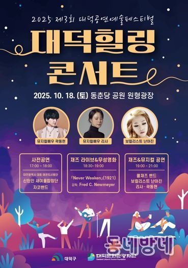 동네방네 김형규 기자 | 대덕문화관광재단은 오는 18일 동춘당 원형광장에서 ‘2025 대덕힐링콘서트’를 개최한다고 밝혔다.