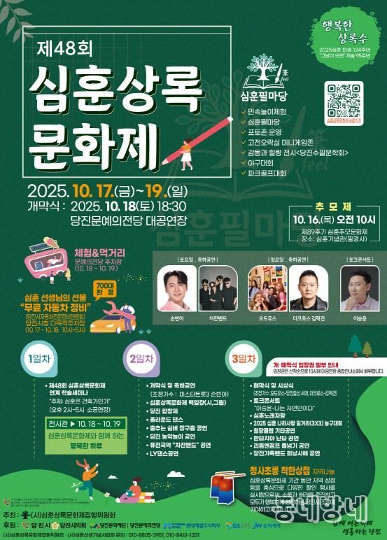 동네방네 김형규 기자 | 당진시는 제48회 심훈상록문화제가 10월 17일부터 19일까지 사흘간 당진문예의전당 일원에서 열린다고 13일 밝혔다.