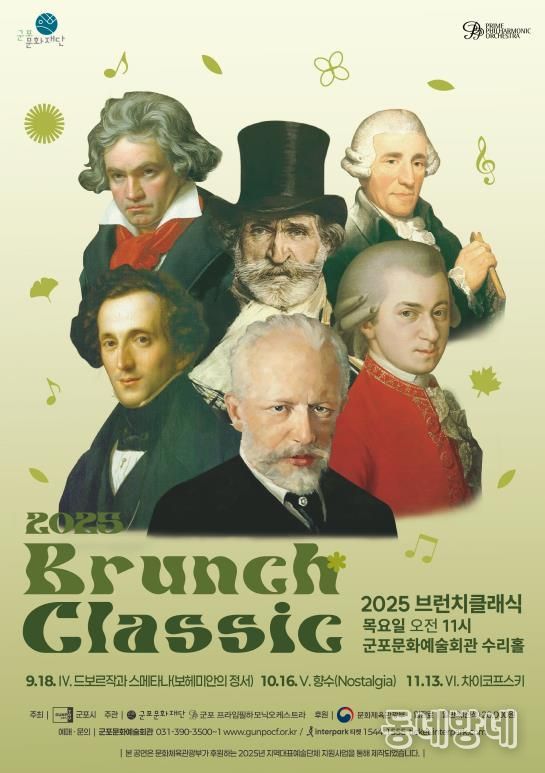 동네방네 김형규 기자 | 군포문화재단은 오는 10월 16일 오전 11시, 군포문화예술회관 수리홀에서 ‘2025 브런치클래식’의 다섯 번째 공연을 개최한다.