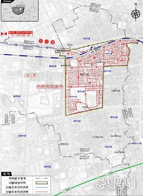 ‘달서천 1구역 하수관로정비 임대형 민간투자사업(BTL)’은 서구 비산·평리동 일원에 총사업비 861억 원을 투입해 37㎞의 오수관로 신설과 3,709가구를 대상으로 배수 설비 정비를 추진하는 대규모 민간투자사업이다.