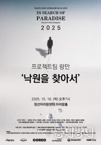 동네방네 김형규 기자 | (재)정선아리랑문화재단은 (재)예술경영지원센터의 ’2025 공연예술 지역 유통지원 사업‘을 통해 선정된 작품 중 마지막인 무용극 ’낙원을 찾아서‘를 오는 10월 16일 19시에 올릴 예정이다.