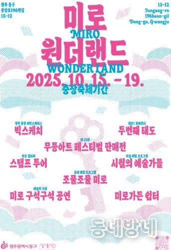 동네방네 김형규 기자 | 광주 동구는 오는 15일부터 19일까지 열리는 ‘제22회 광주 추억의 충장축제’ 개최 기간 동안 미로센터와 예술의 거리에서 시민 참여형 예술축제 ‘미로 원더랜드’를 개최한다고 밝혔다.