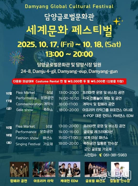동네방네 김형규 기자 | 담양군은 오는 17일부터 이틀간 담양글로벌문화관과 담양오일시장 일원에서 ‘세계문화페스티벌’을 연다고 밝혔다.