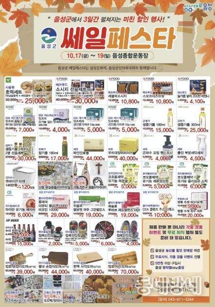 동네방네 김형규 기자 | 음성군은 이달 17일부터 19일까지 음성종합운동장에서 음성군 쎄일페스타를 개최한다고 밝혔다.