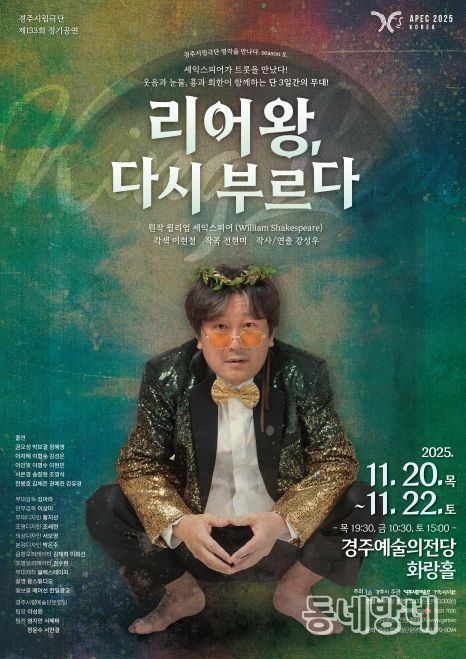 동네방네 김형규 기자 | 경주시립극단(예술감독 강성우)은 오는 11월 20일부터 22일까지 3일간 경주예술의전당 화랑홀에서 제133회 정기공연 '리어왕, 다시 부르다'를 선보인다.