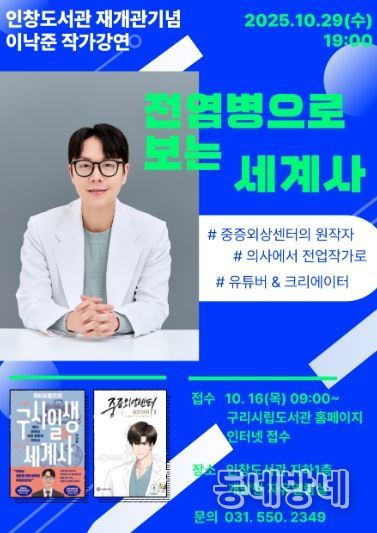 특히 작가초청 강연에는 『중증외상센터 : 골든아워』의 원작자인 이낙준 작가가 참여한다. 행사는 10월 29일(화) 저녁 7시, 새롭게 단장한 지하 1층 북카페형 개방 공간에서 진행된다.