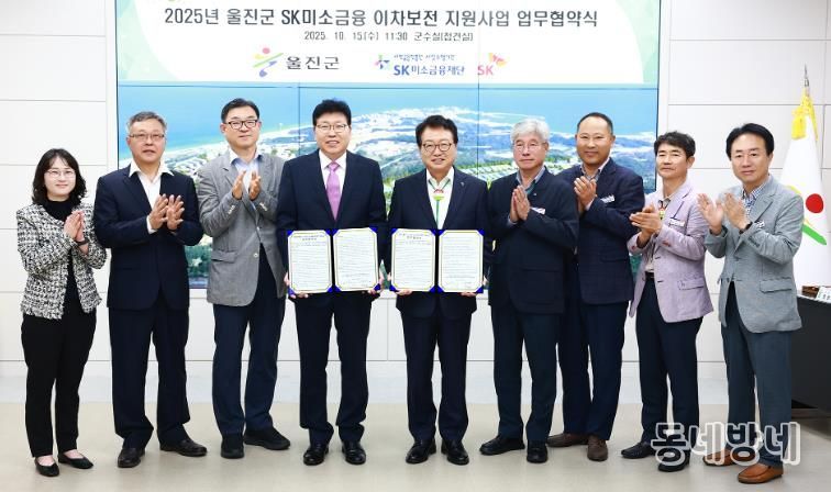 동네방네 김형규 기자 | 울진군은 SK미소금융재단과 10월 15일 울진군청에서 저신용·저소득 소상공인의 금융부담 완화를 위한 이차보전 지원 업무협약을 체결했다.