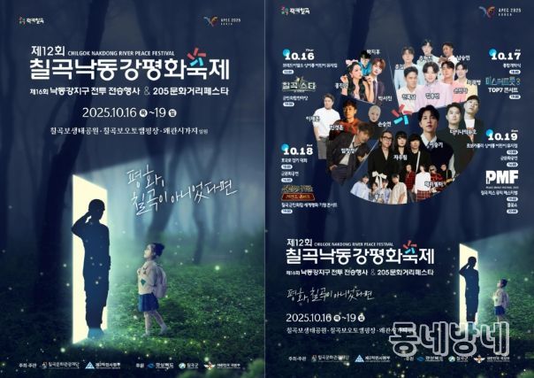 동네방네 김형규 기자 | 호국과 평화를 기치로 한 국내 유일의 민군(民軍) 통합 축제인 제12회 칠곡낙동강평화축제 및 제16회 낙동강지구전투 전승행사가 오는 10월 16일부터 19일까지 4일간 칠곡보생태공원 일원에서 열린다.