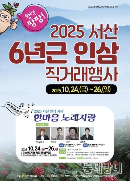 동네방네 김형규 기자 | 충남 서산시는 오는 24일부터 26일까지 3일간 서산인삼유통센터에서 ‘서산6년근 인삼 직거래 행사’를 개최한다고 밝혔다.