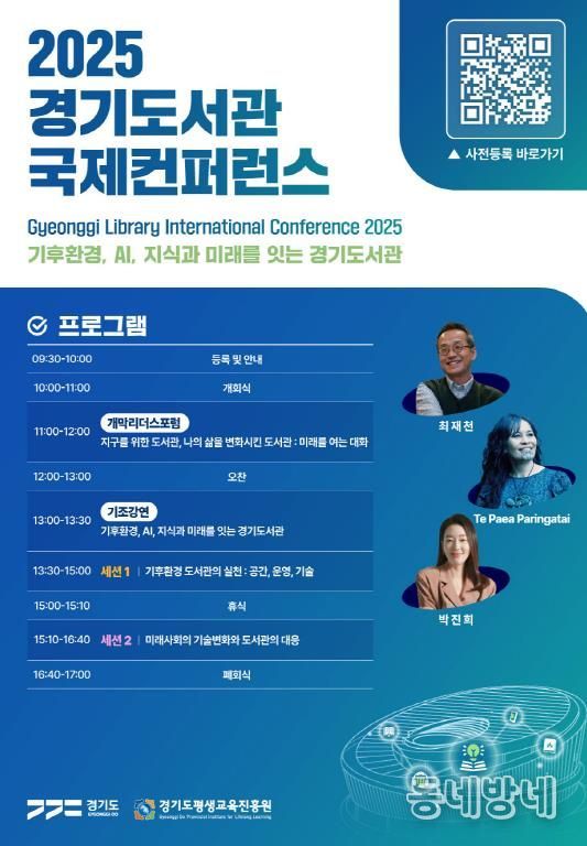 동네방네 김형규 기자 | 경기도와 경기도평생교육진흥원은 오는 23일 수원컨벤션센터 컨벤션홀3에서 ‘기후환경, AI, 지식과 미래를 잇는 도서관’을 주제로 ‘2025 경기도서관 국제콘퍼런스’를 개최한다.
